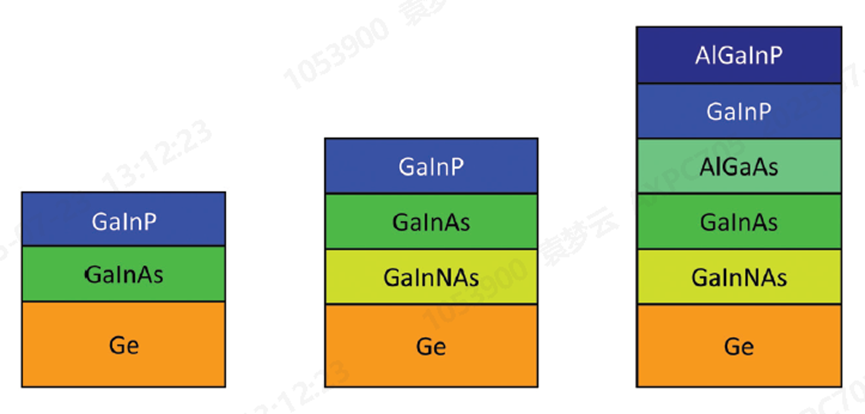 图2. 由III-V半导体材料制成的不同多结太阳电池的示例草图[1]