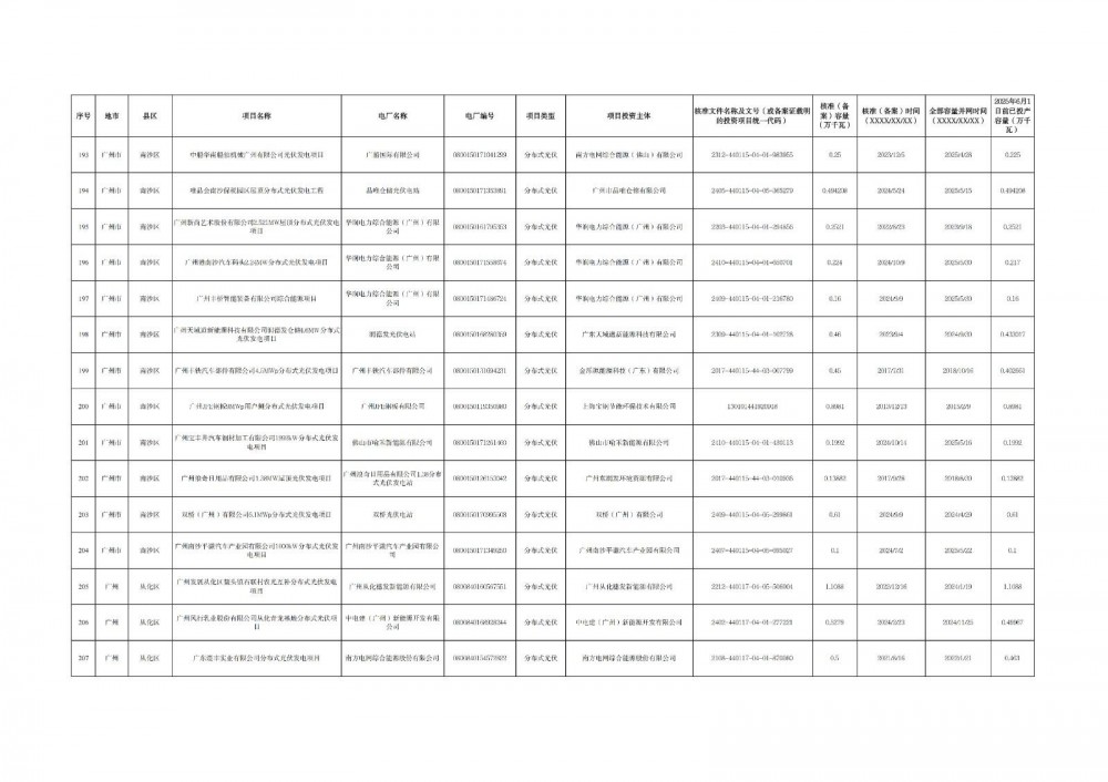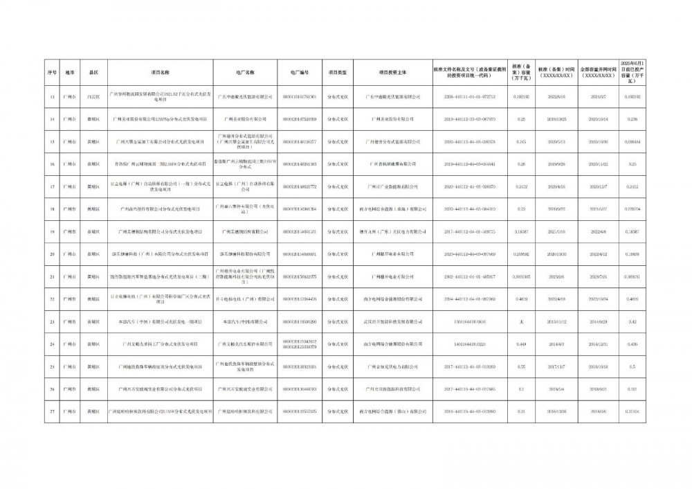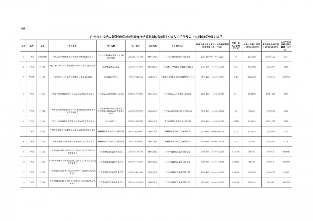 近日,广州市发展和改革委员会发布《关于新能源可持续发展价格结算机制存量项目申报情况的公示》的通知,公布了广州市申报纳入新能源可持续发展价格结算机制存量项目(接入10千伏及以上电网电压等级)清单。