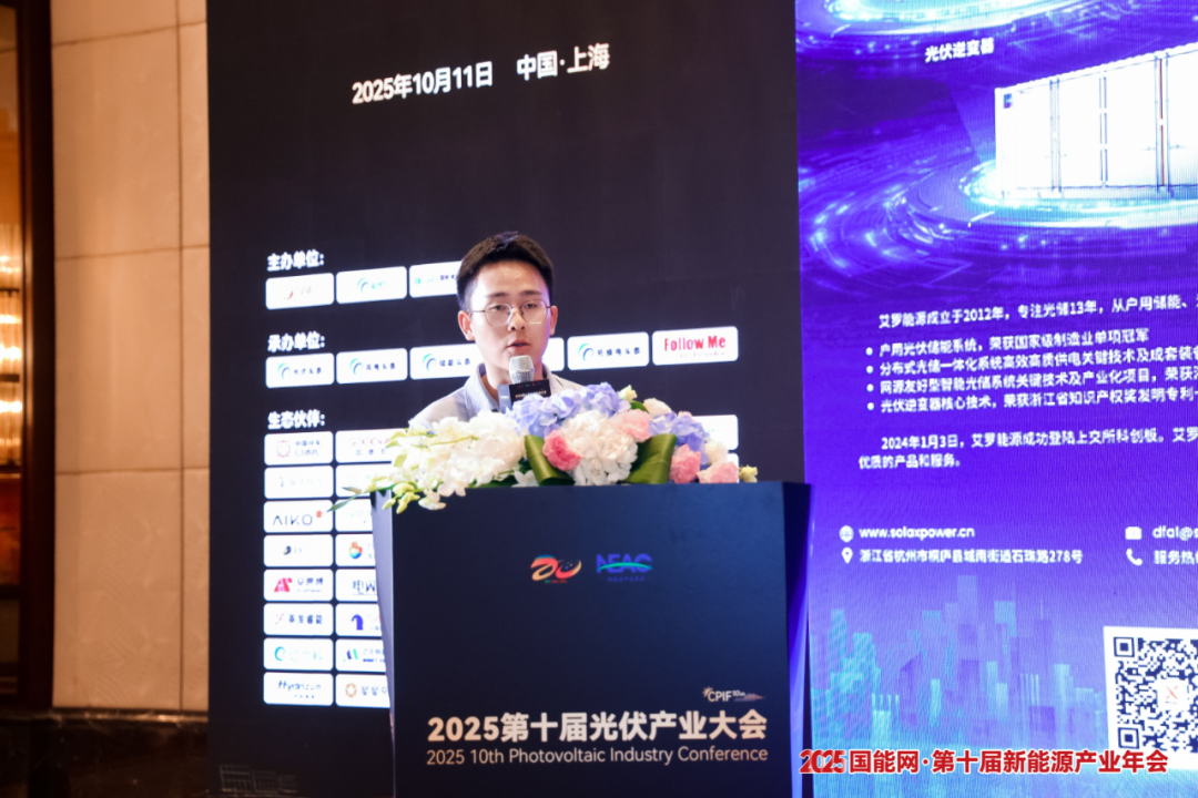 在大会主题演讲环节,深圳古瑞瓦特新能源有限公司售前经理罗荣春介绍了古瑞瓦特全场景光储融合解决方案,展示了其在户用、工商业以及微网等场景中的产品类型及应用。