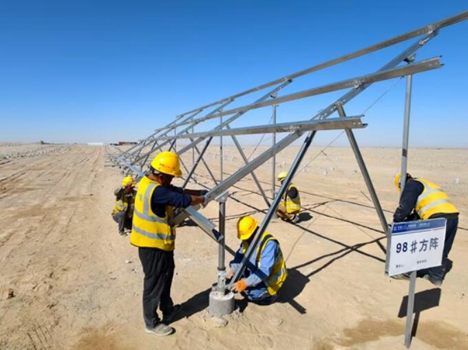 新疆民丰100万千瓦治沙项目首批光伏板支架安装启动