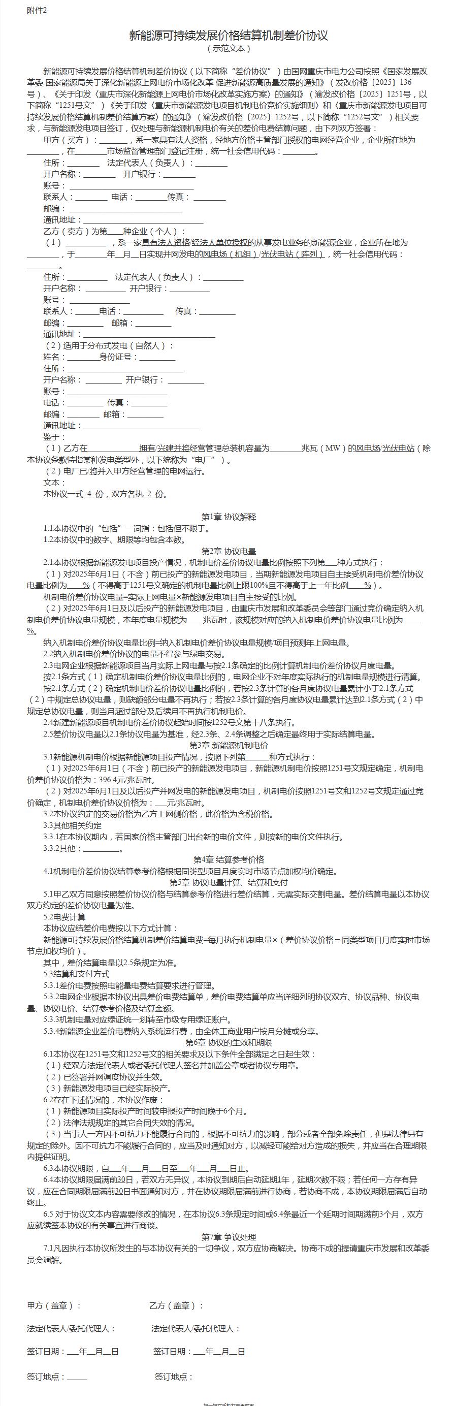 2.新能源可持续发展价格结算机制差价协议(示范文本)